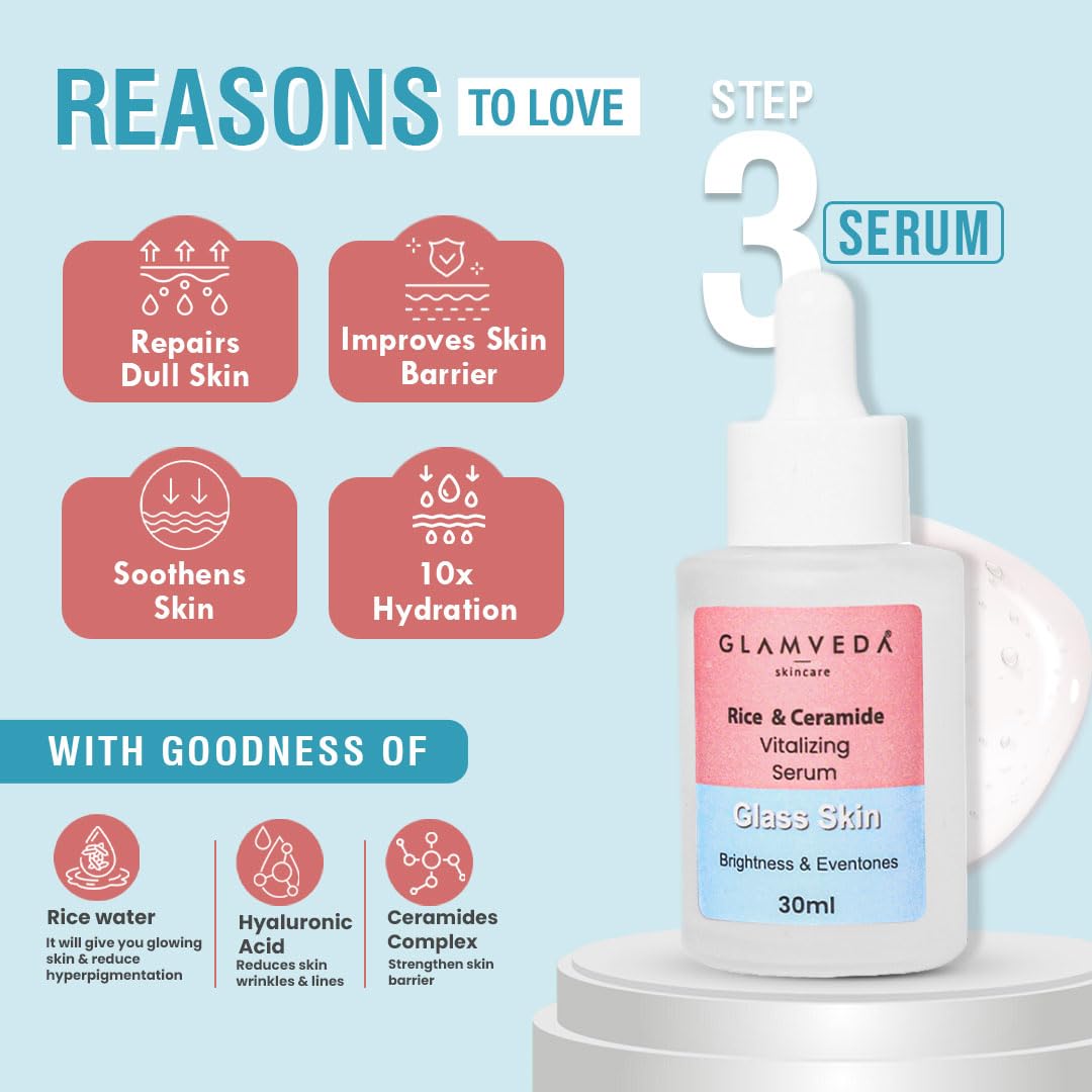 Formulated with rice extract, ceramide complex, hyaluronic acid, vitamin C & B.
