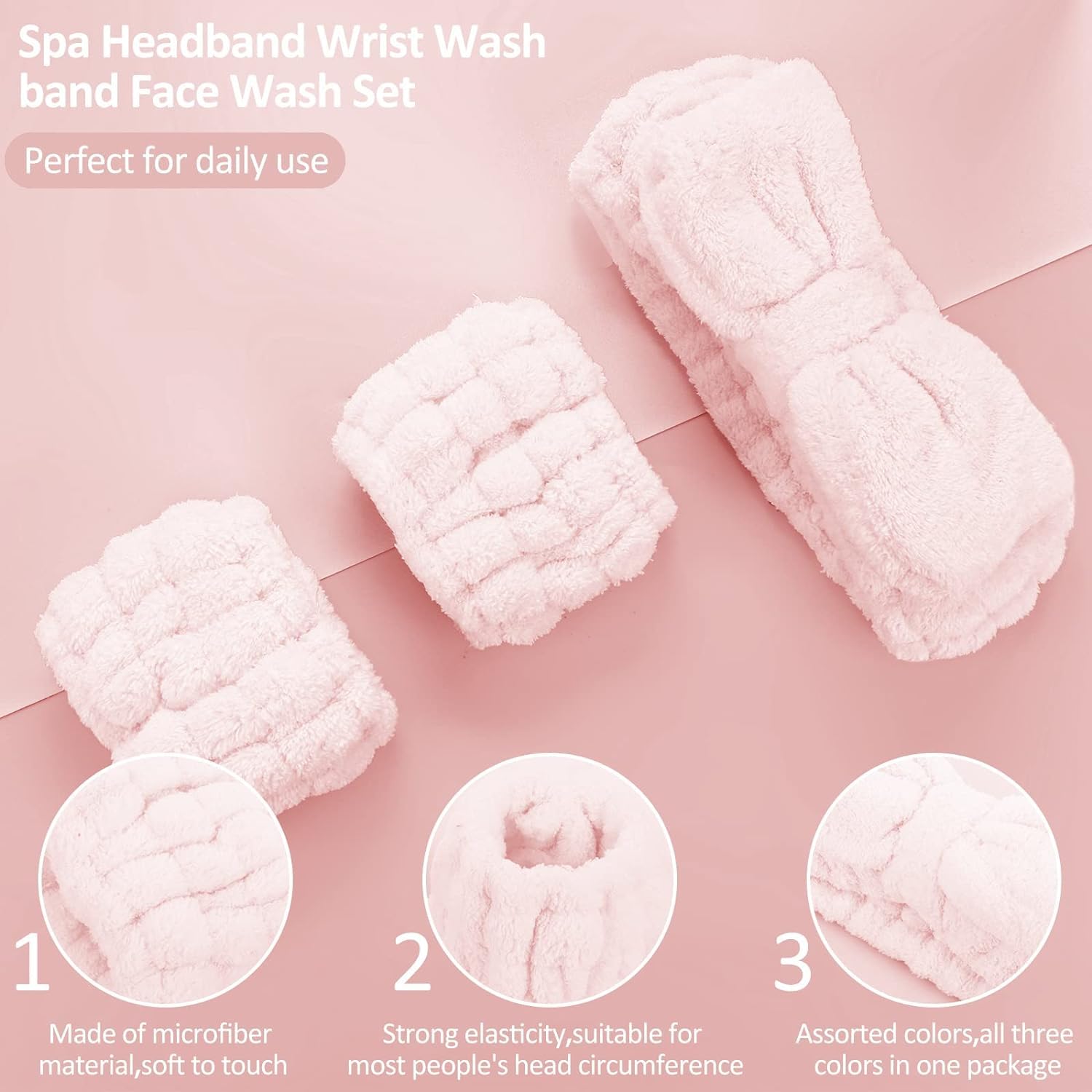 【Spa Headbands & Wristbands Set】 : The package contains 2pcs face wash headbands and 4 pcs wristbands. You can use them in your daily life.