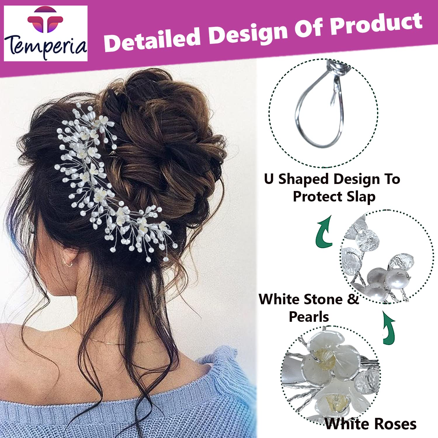 ❤ PACKAGE INCLUDES: 1 Silver White Colour Hair Brooch