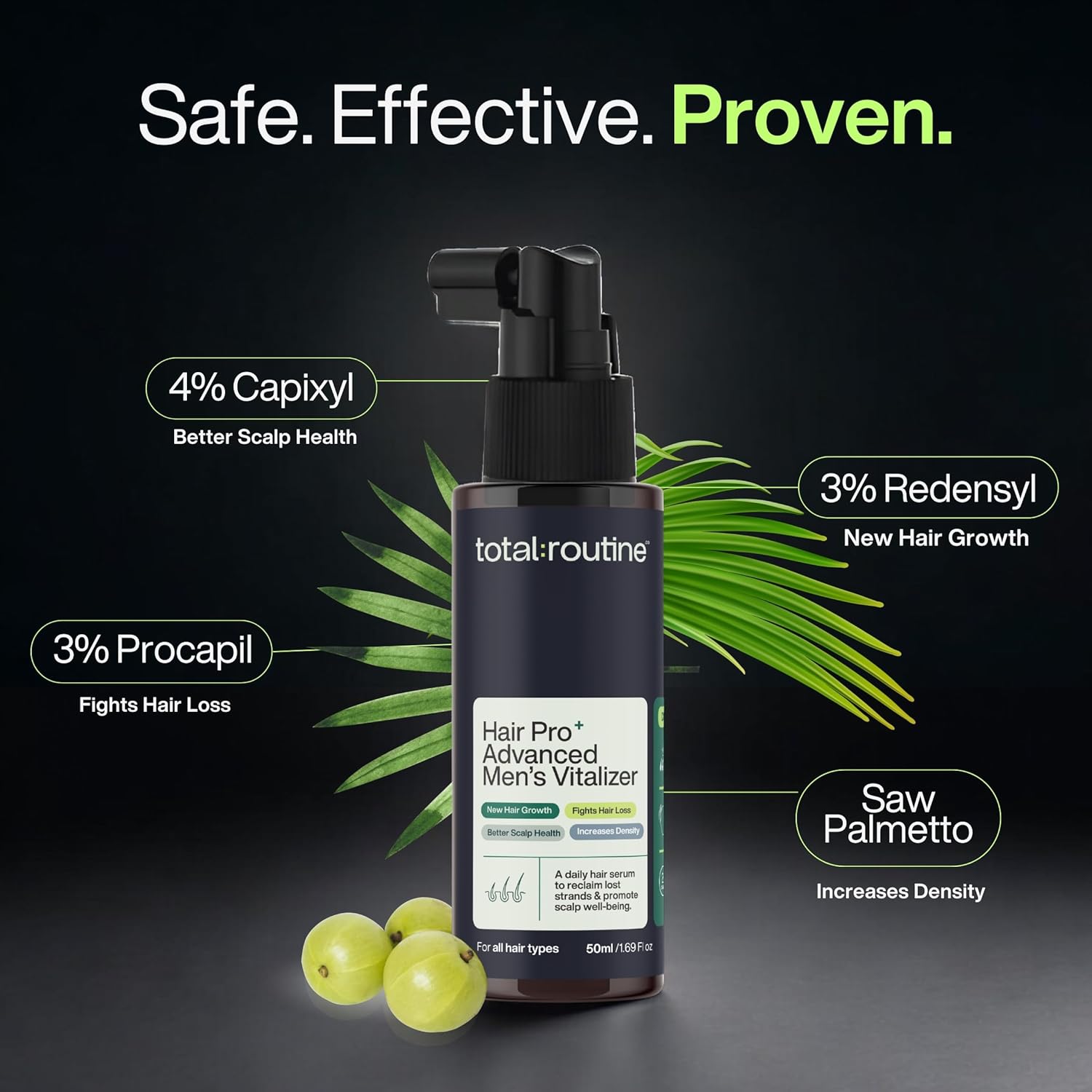 ✅ Clinically-Backed Advanced Hair Growth Formula:: Our Total Routine Hair Growth Serum for men is packed with potent ingredients like Redensyl, Procapil & Anagain that stimulate hair follicles, promoting stronger, thicker hair